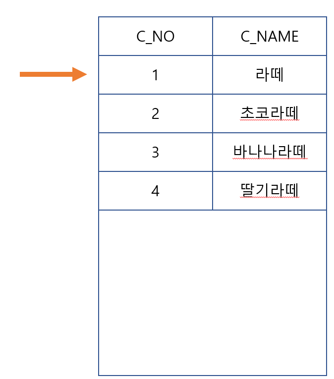 위 이미지에서 커서가 현재 아무것도 가리키지 않아, 만약 getString() / getInt()등 메소드를 사용했을 경우 에러가 발생한다.