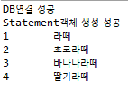 System.out.println("Statement객체 생성 성공");