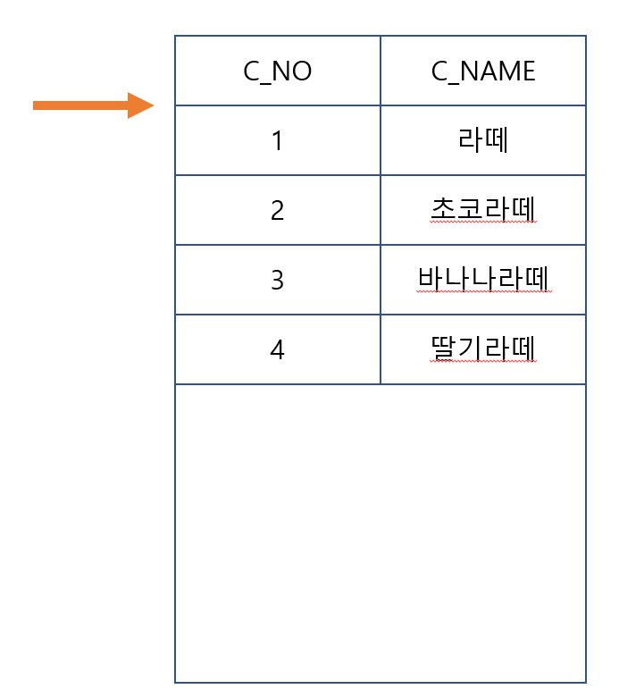 위 이미지에서 커서가 현재 아무것도 가리키지 않아, 만약 getString() / getInt()등 메소드를 사용했을 경우 에러가 발생한다.
