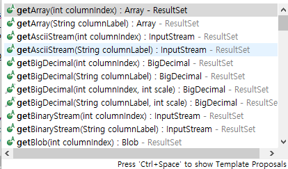 ResultSet(java.sql.ResultSet)은 executeQuery(String sql)을 통해 쿼리 실행하면 ResultSet타입으로 반환을 해주어 결과값을 저장할 수 있다.