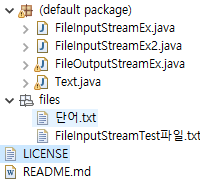 실행하기 전에 files패키지에는 2개의 텍스트 파일밖에 없다.